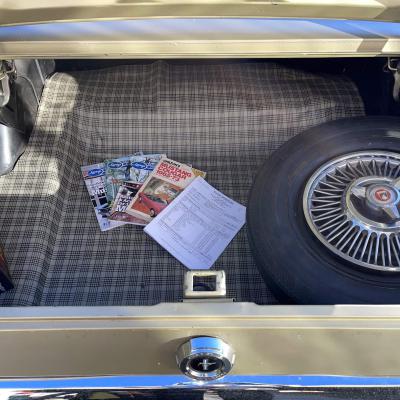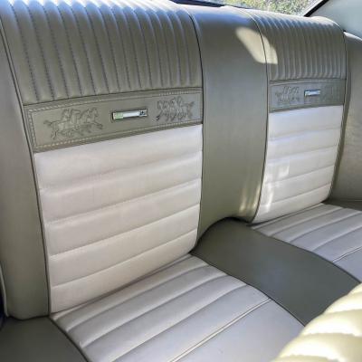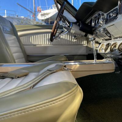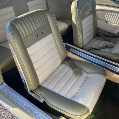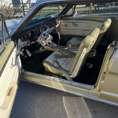 Intérieur Pony '' Ivy Gold Vinyl and White Luxury Bucket Seats '' dans un superbe état, le très prisé '' Rally Pack '' fait partie de la dotation d'origine ainsi qu'une climatisation, d'origine également, fonctionnelle, refaite à neuf récement.