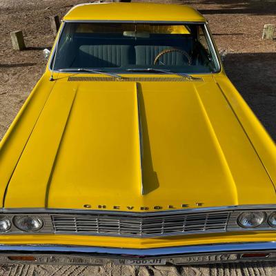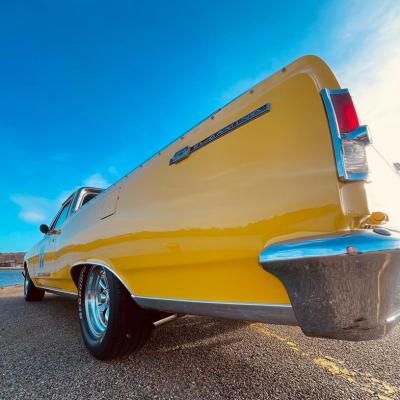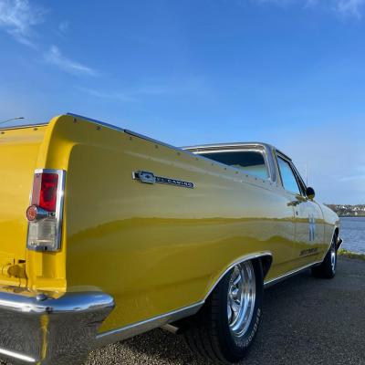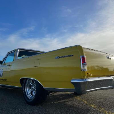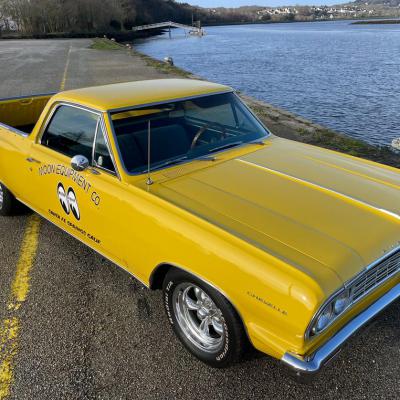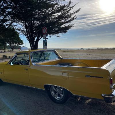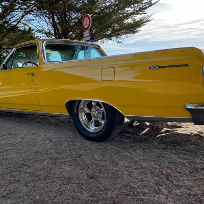 Quacker's Motors est heureux de vous proposer à la vente ce Chevrolet El Camino 1964 V8 327ci deuxième génération 1964 à 1967 qui se sert de la base de la Chevelle pour en réaliser un pick-up très sportif et stylé à souhait.