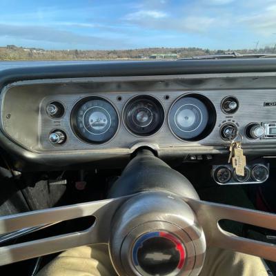 L'intérieur est en bon état, cet intérieur est dans sa configuration d'origine, hormis l'installation de 2 manomètres de surveillance de la pression d'huile et de la température d'eau ainsi que d'un voltmètre.