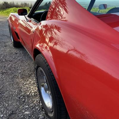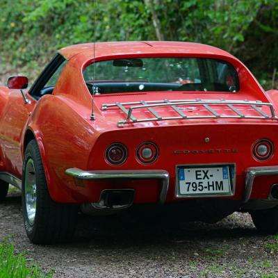Elle a été produite à Saint Louis Missouri, elle est équipée du V8 350 ci L82 de 250 ch associé à une boite manuelle quatre rapports, freinage et direction assistés, Les trains roulants on été refaits en intégralité, un gros dossier de factures est fourni, le moteur a été refait il y a une dizaine d'années et équipé récemment d'une admission Edelbrock (pipe et carbu) ainsi que d'un allumage électronique, cette Corvette marche fort ! L'ambiance sonore est d'un niveau rarement atteint cette année là, le superbe collecteur d'échappement Hooker n'y étant peut-être pas étranger,