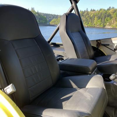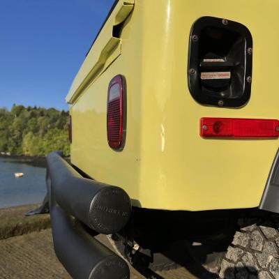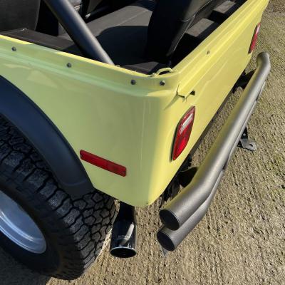 A l'extérieur tous les ingrédients sont là pour un voyage sur la west Coast US, couleur flashy, roues big foot en alu, phares longue portée, pare-buffle et au choix toit souple, toit bikini ou pas de toit du tout, juste l'arceau de sécurité.