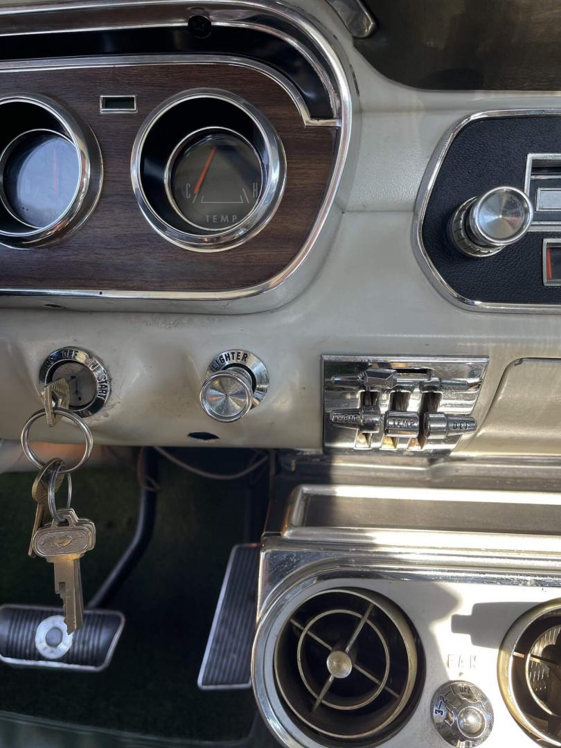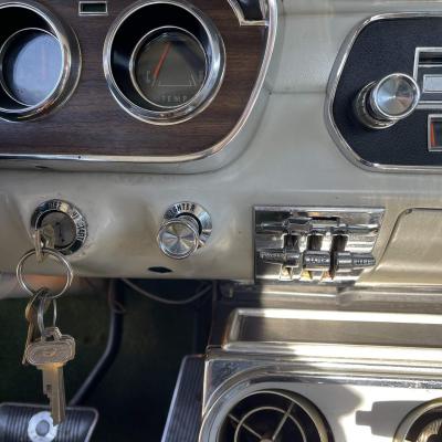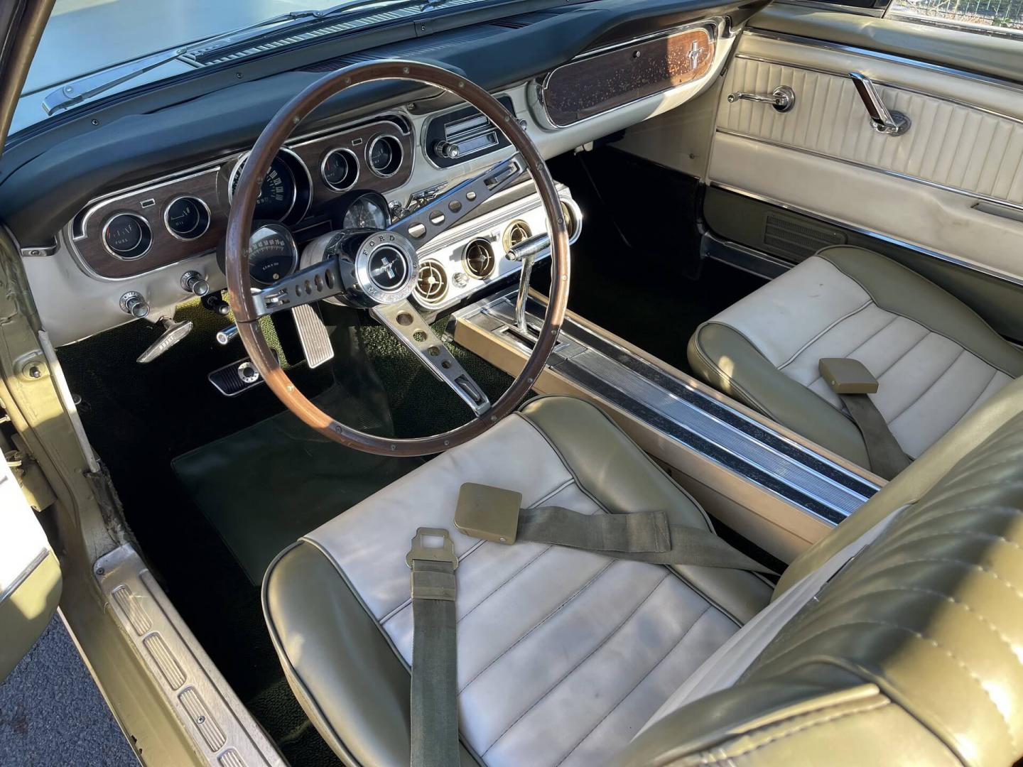 Intérieur Pony '' Ivy Gold Vinyl and White Luxury Bucket Seats '' dans un superbe état, le très prisé '' Rally Pack '' fait partie de la dotation d'origine ainsi qu'une climatisation, d'origine également, fonctionnelle, refaite à neuf récement.