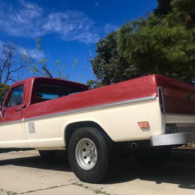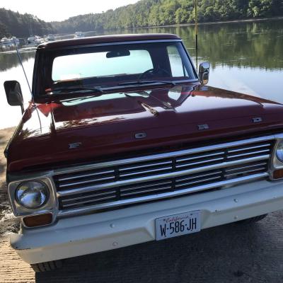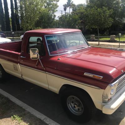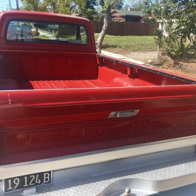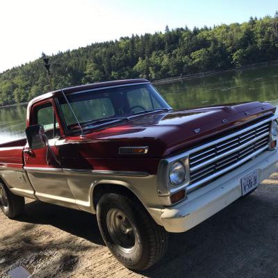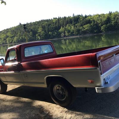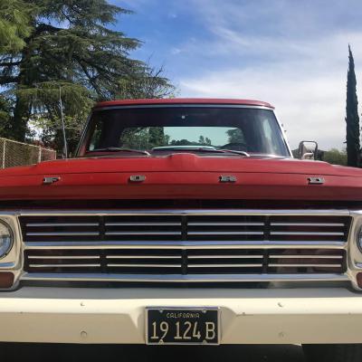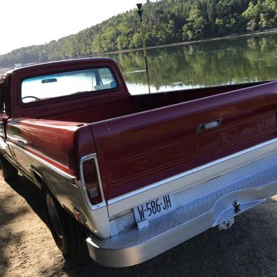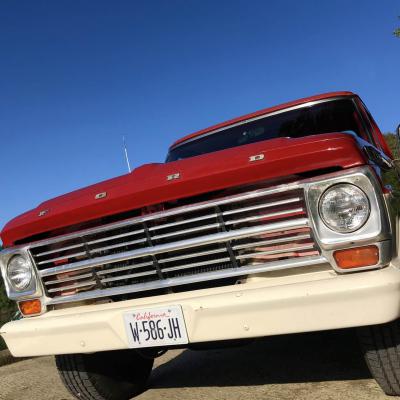 Quacker's Motors vous propose à la vente ce Ford F-100 de 1968 V8 pick-up boite automatique. Ce Ford F-100 n'a eu qu'un seul propriétaire, en effet Arthur l'a acheté neuf chez Ford en 1968 lorsqu'il avait 36 ans et vient de s'en séparer à maintenant 88 ans car plus autorisé à le conduire.