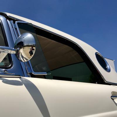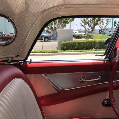 L'intérieur rouge, blanc et chrome parachève cette ambiance typique des voitures de luxe des années 50, l'ensemble du garnissage des sièges, des moquettes, des tapis et de l’accastillage intérieur est neuf, deux manomètres de surveillance de la pression d'huile et de la température d'eau ainsi qu'un voltmètre et un compte tours additionnel ont été installés.