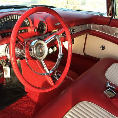 Le maniement de cette Thunderbird se pratique en toute décontraction car en 1956 deux équipements de confort courants de nos jours que sont la direction assistée et la transmission automatique, faisaient partie de la dotation extraordinaire de cette voiture à l'époque.