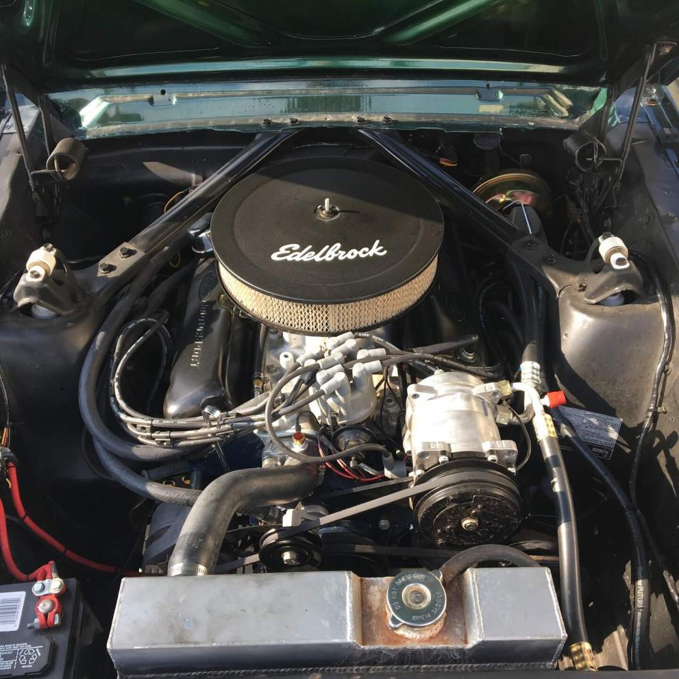Un carburateur Edelbrock 4 corps a été installé sur ce v8 code C, une admission performance de la même marque y prend également place, un allumage électronique a remplacé l'ancien à rupteurs vous garantissant ainsi des démarrages optimisés à toutes les saisons, une nouvelle poulie Damper a été montée, le radiateur est neuf, il est en aluminium associé à un ventilateur électrique, en ce qui concerne l'échappement, il est neuf et est constitué notamment d'un collecteur 4 en 1 et de deux lignes séparées, lui procurant un son extraordinaire, vous l'aurez constaté sur les photos, les caches culbuteurs et le filtre à air ont étés remplacés par des modèles noirs.