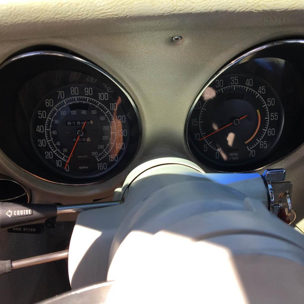 Aucun frais à prévoir pour cette Corvette qui est entièrement d'origine et qui plus est " matching number ", 82000 miles d'origine. Bien qu'ayant toujours vécue sous le soleil de la Californie la voiture a tout le temps été gardée à l'abri dans un garage, la peinture a récemment été refaite, l'intérieur a complètement été reconditionné avec le cuir d'usine '' Smoke Grey Leather '' et la moquette au plancher est neuve,