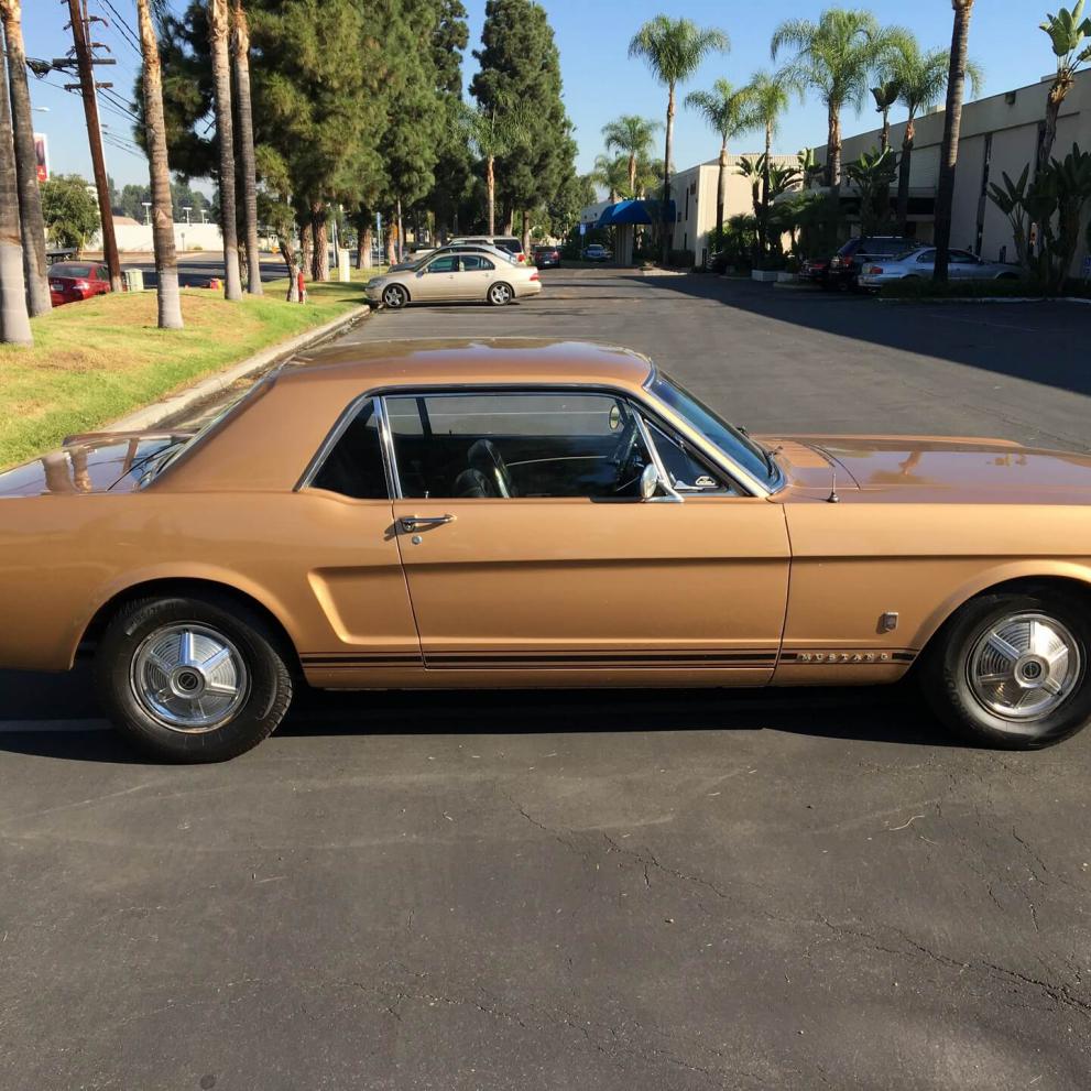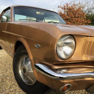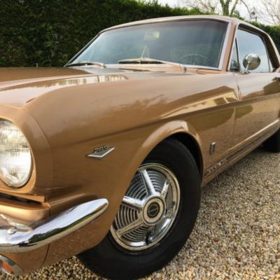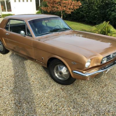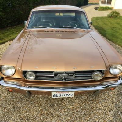 Votre importateur d'anciennes voitures américaines Quacker's Motors vous propose à la vente cette extraordinaire Ford Mustang de 1965 de couleur Bronze Prairie équipée du V8 289 ci code A de 225 CV, qui se trouve être une authentique première main.
