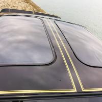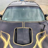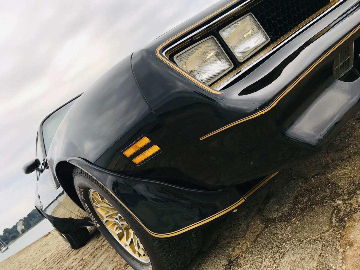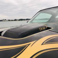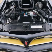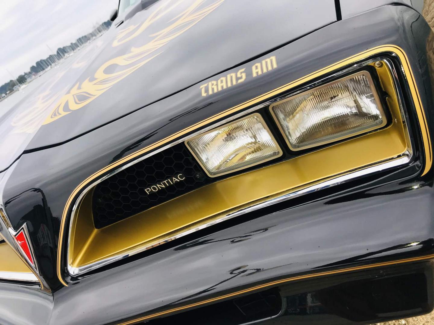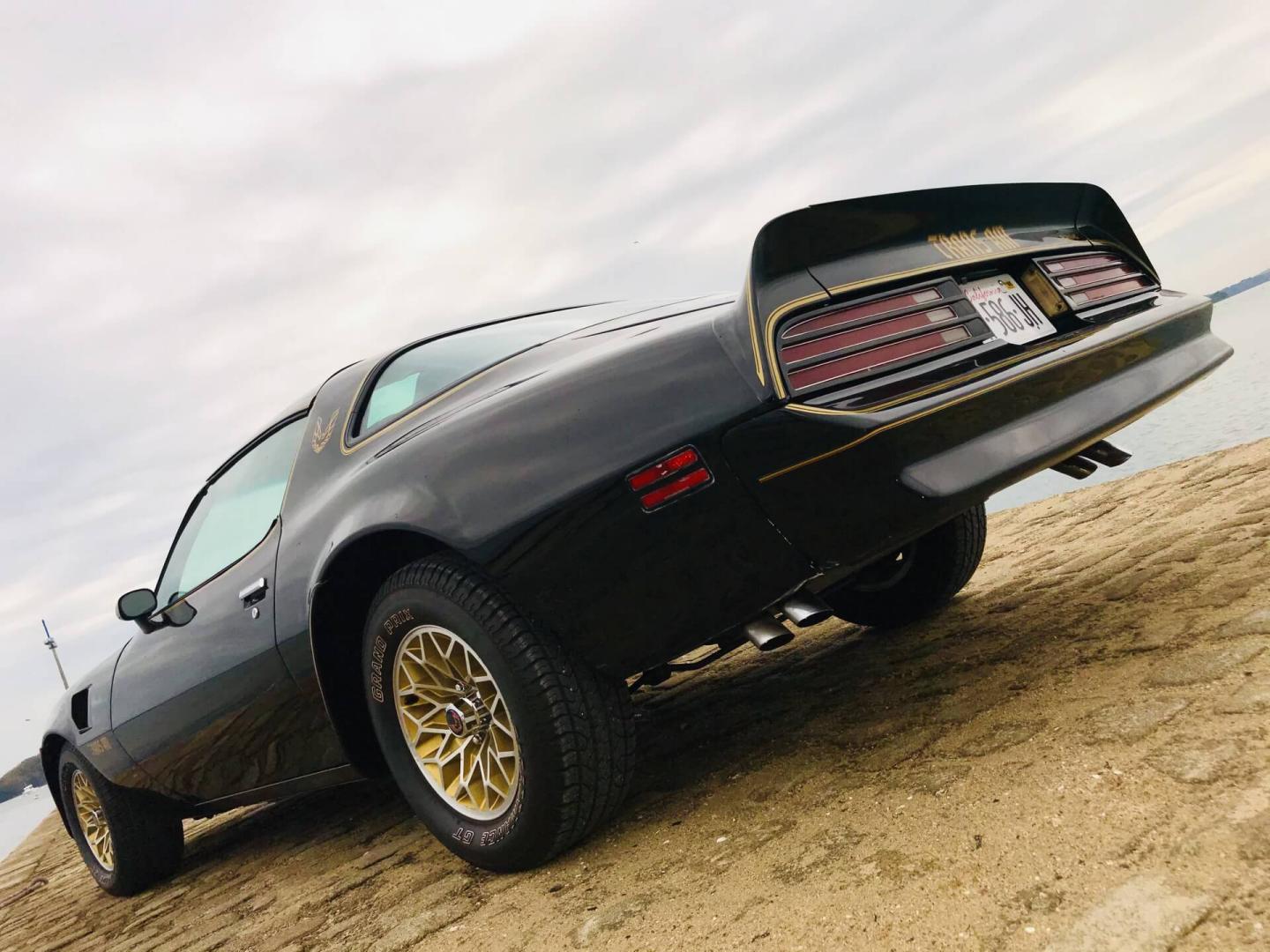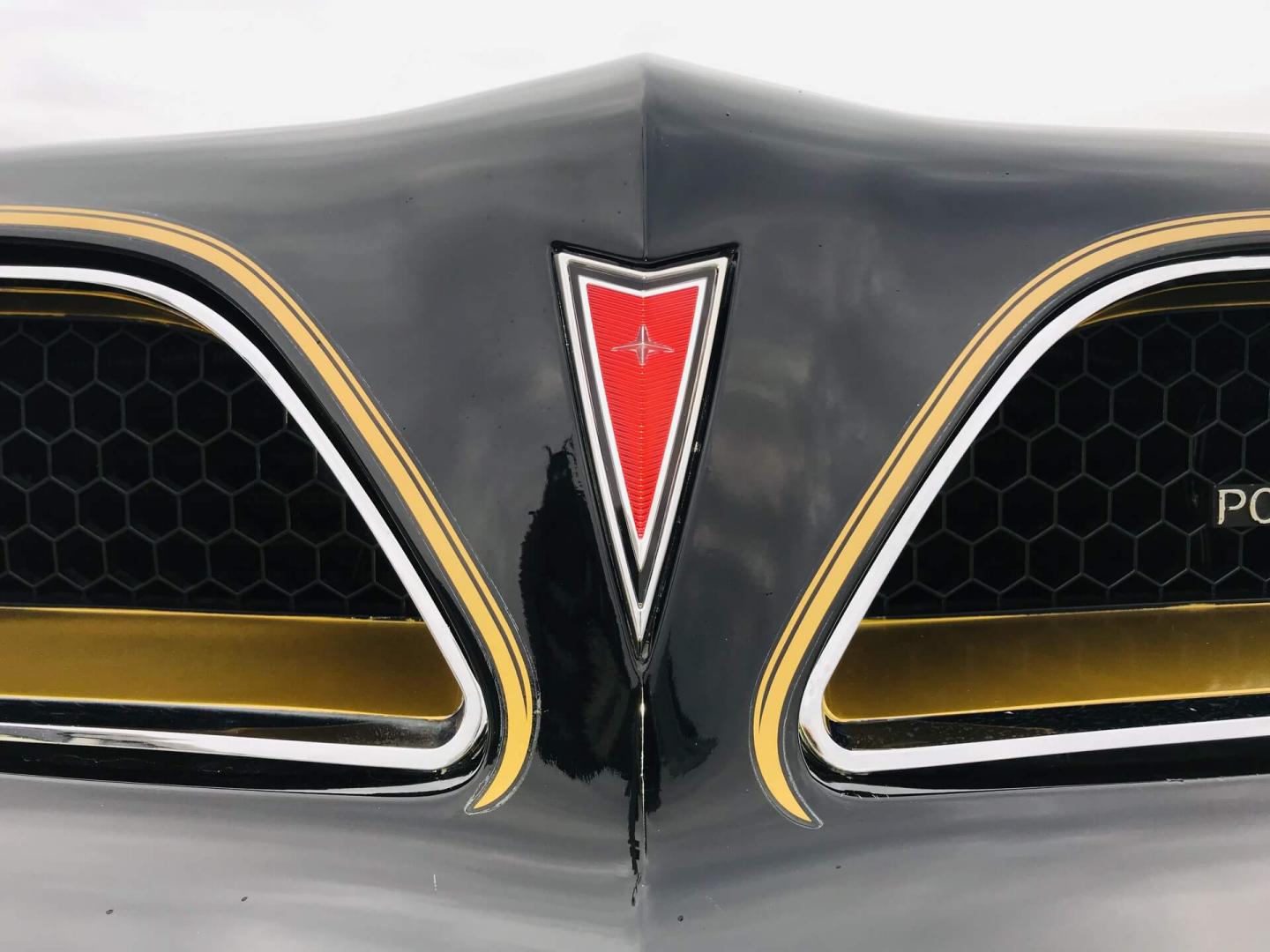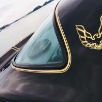 La belle peinture noire de cette Trans AM est mise en valeur par des touches de chrome et d'or sur toute la carrosserie.