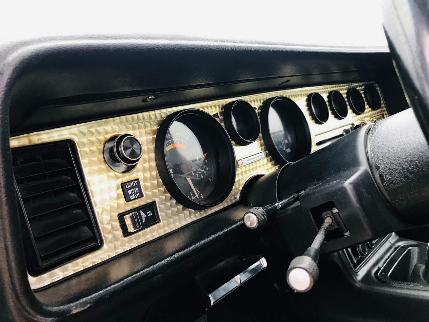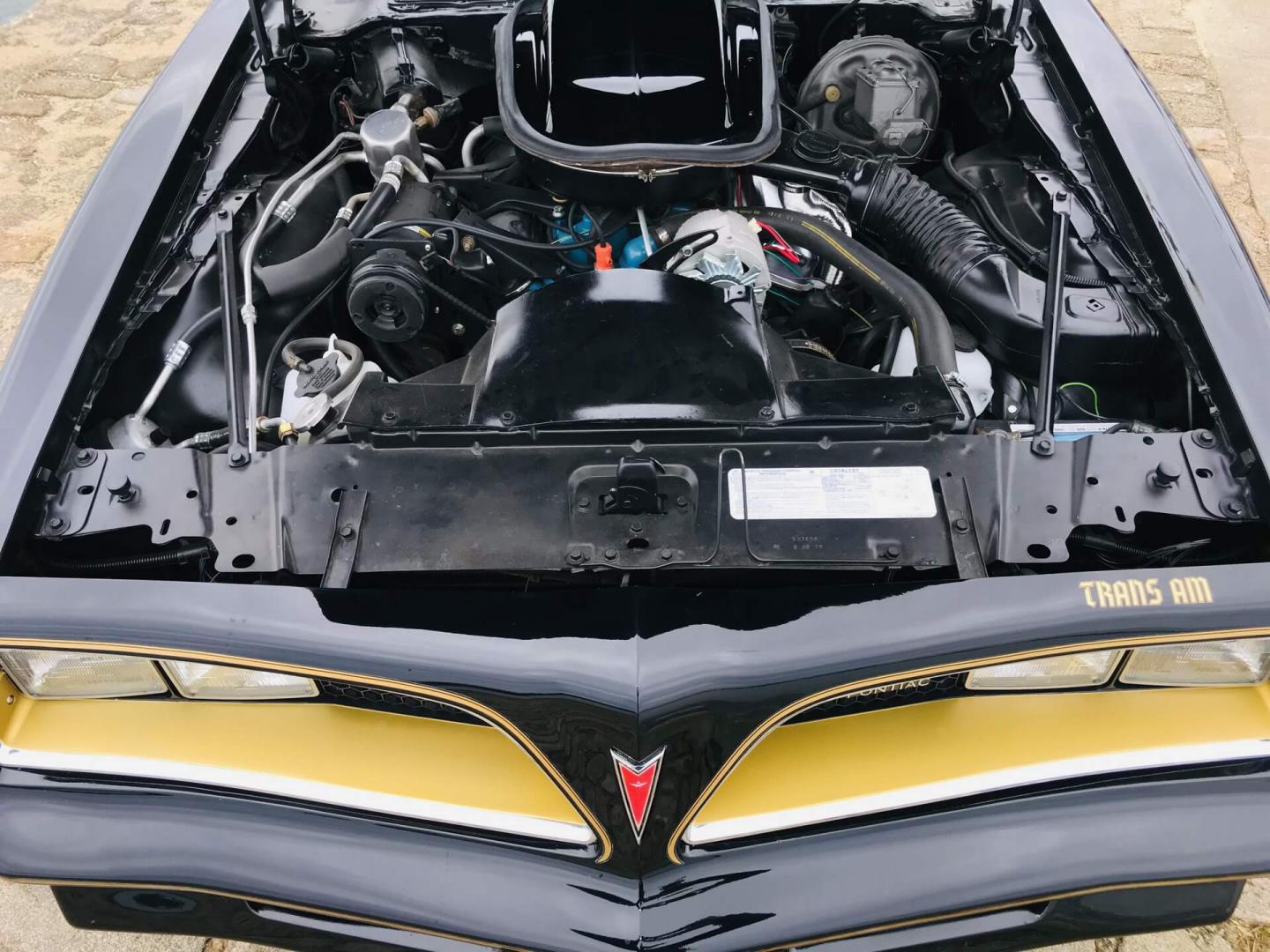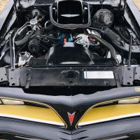 Le moteur et son compartiment ont été traités avec soin. Il s'agit du 400ci (6,6L) Pontiac W72, version la plus puissante en cette année 77, ce moteur est associé à la non moins rarissime boite manuelle 4 rapport qui se manie avec un magnifique levier Hurst.